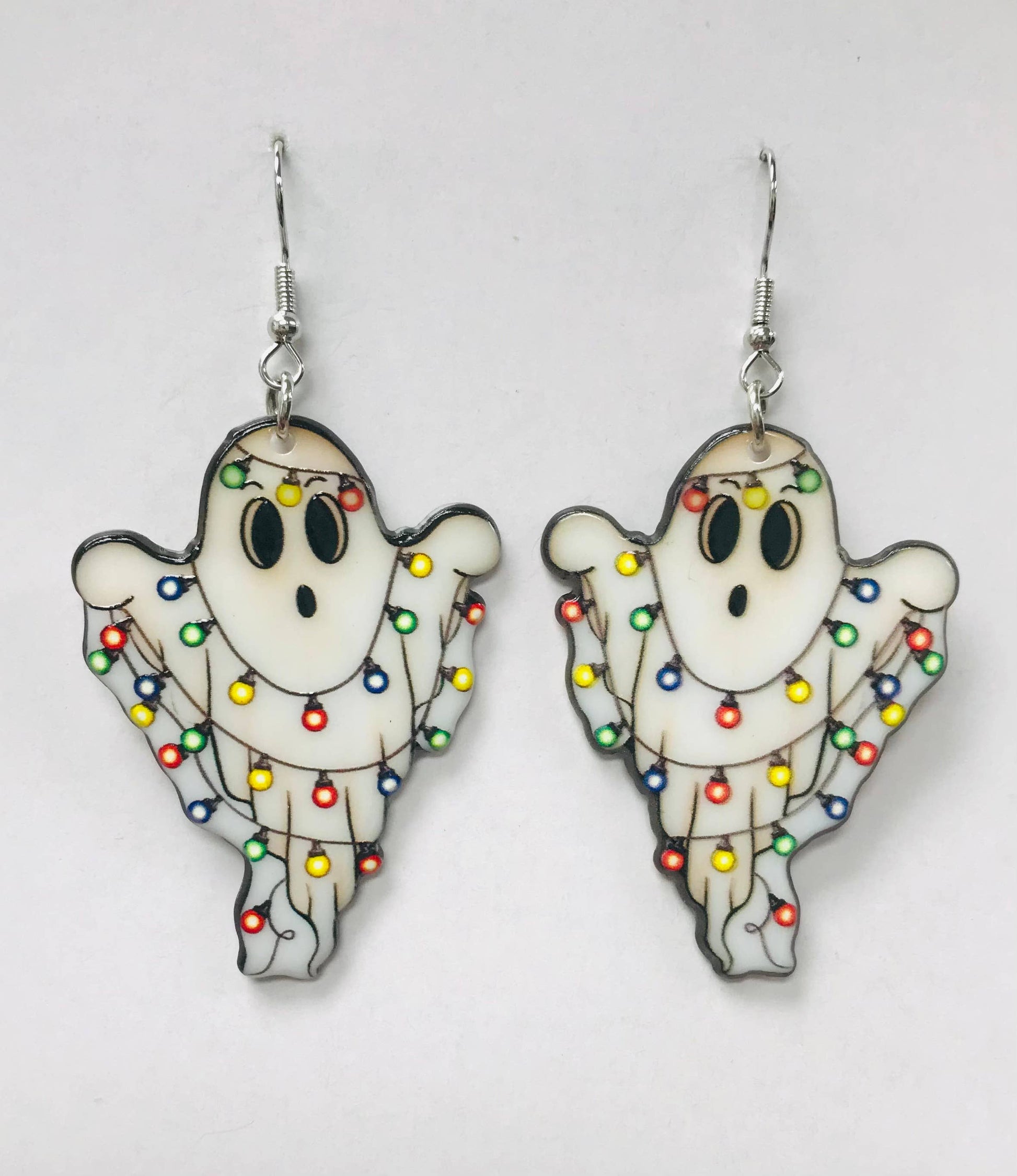 Acrylic White Christmas Ghost Earrings, Ghost Earrings