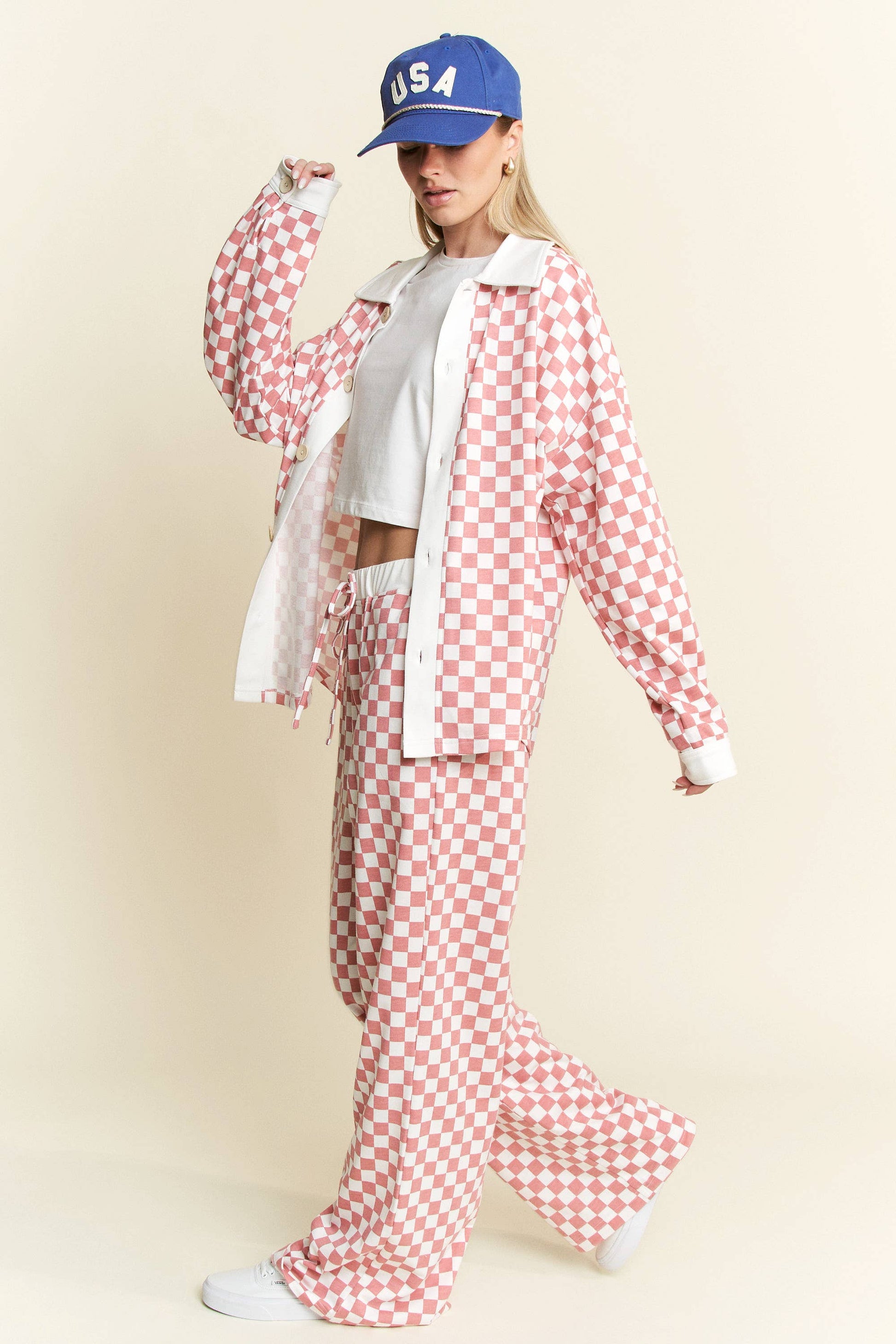 CHECKERED COLLARED BUTTON DOWN OVERSIZED TOP JJT6371