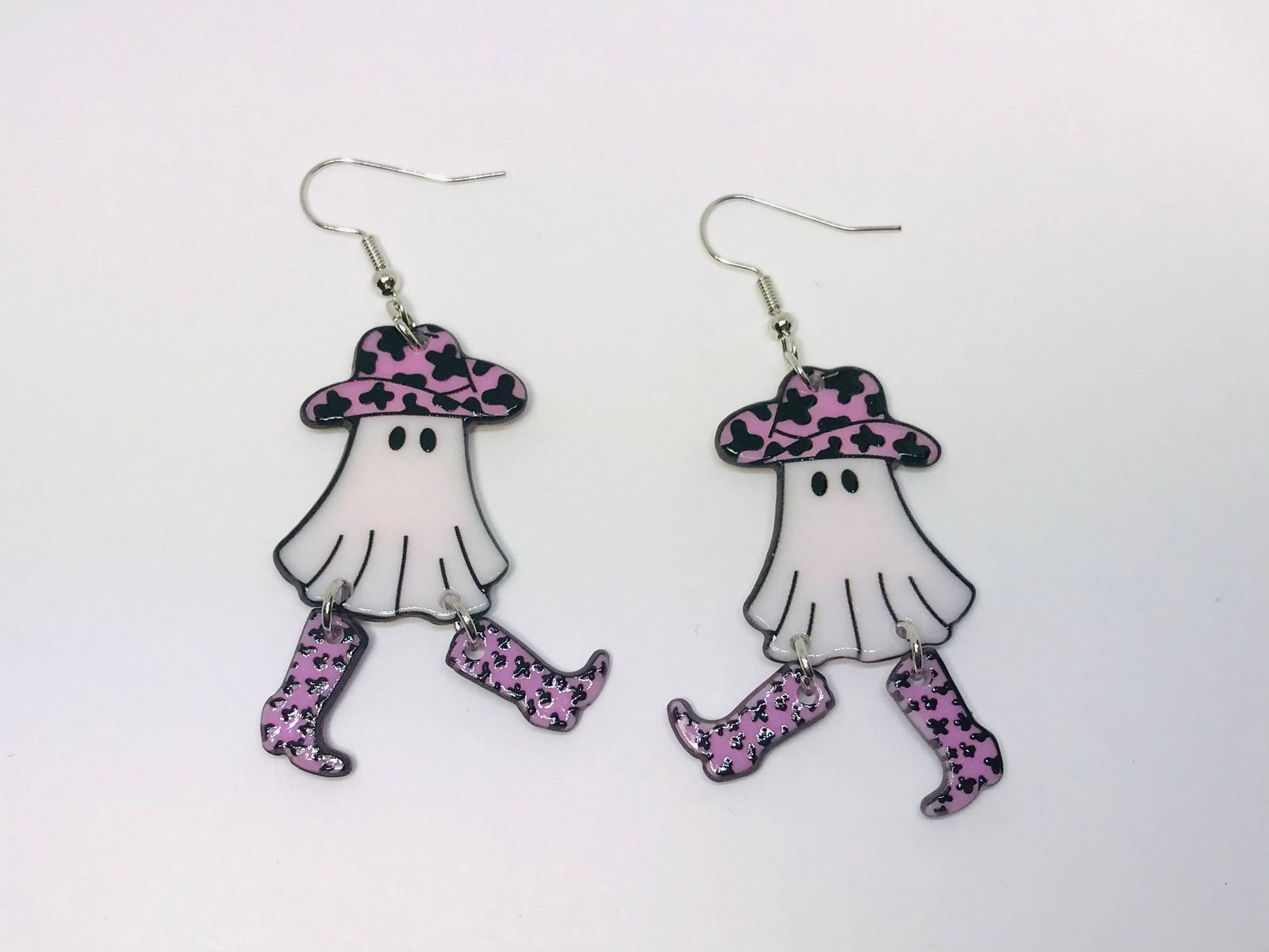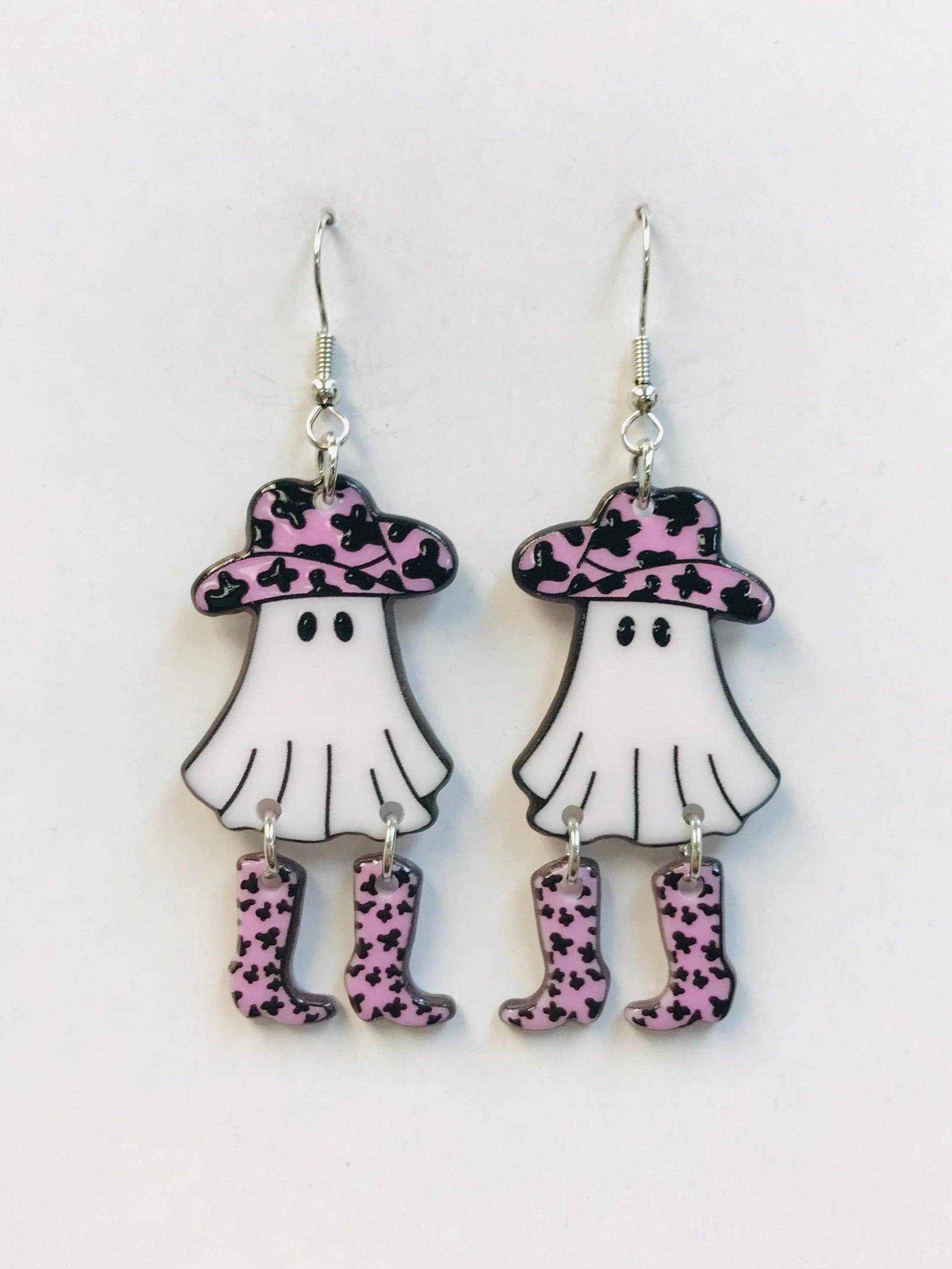Cute Acrylic Cowgirl Ghost Boots Earrings