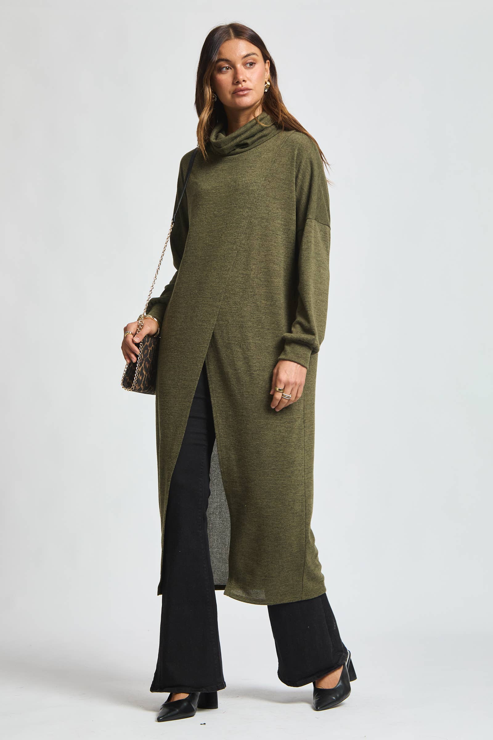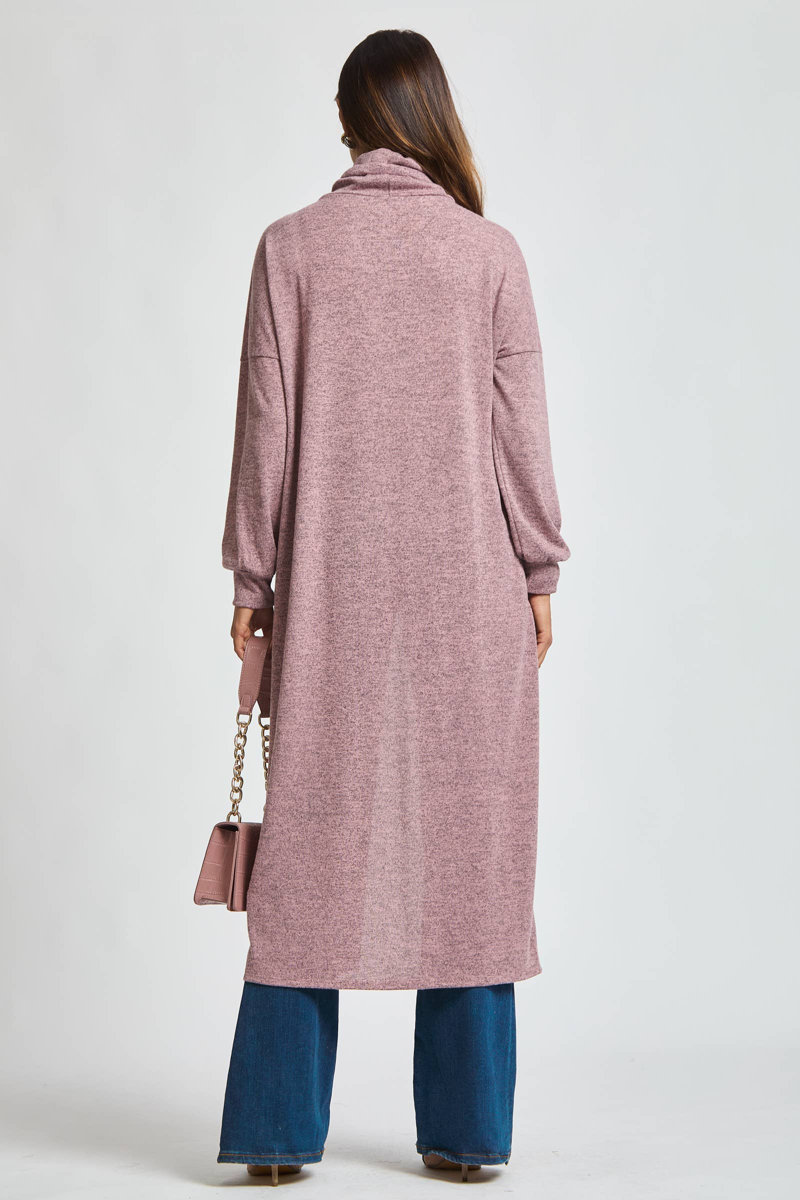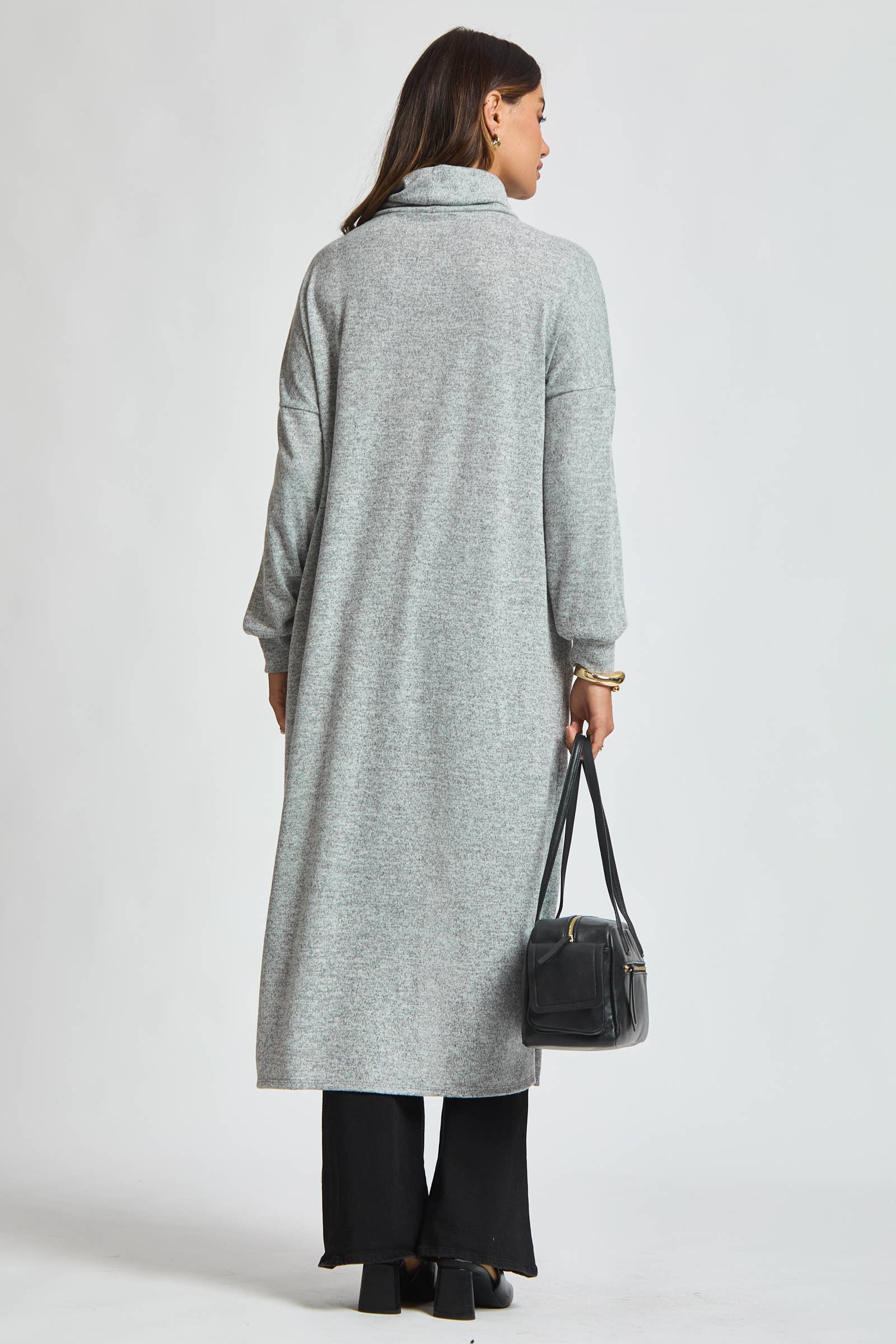 Flowy and flattering. this longline duster too features a soft surolice front detail that creates an elegant. wrapped silhouette--perfect for layering over your fav. basics!