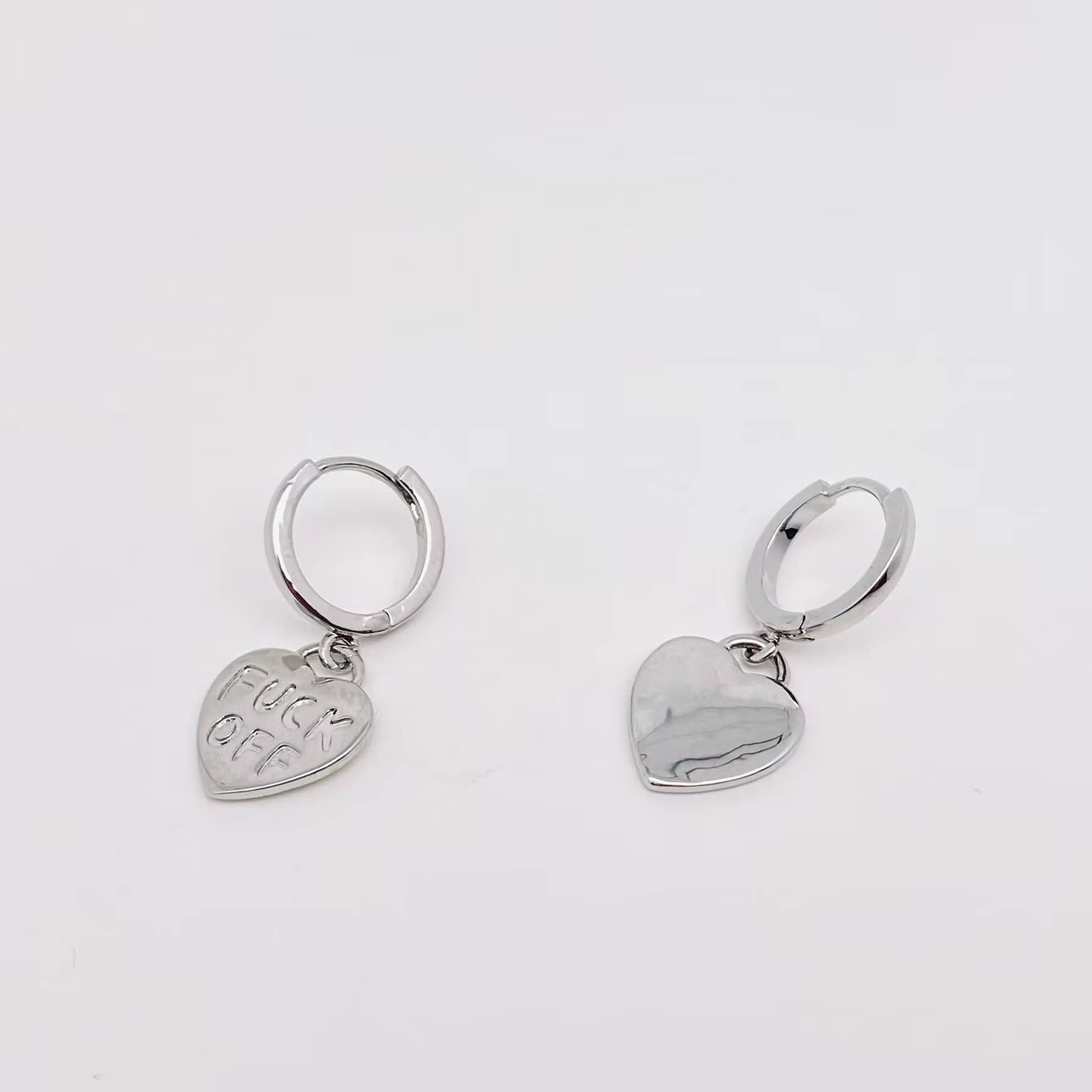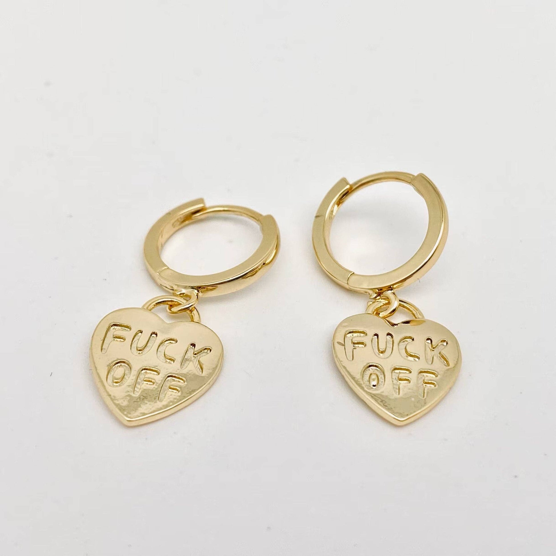 "Fuck off" Heart-shaped Gold Plated Huggie Earrings