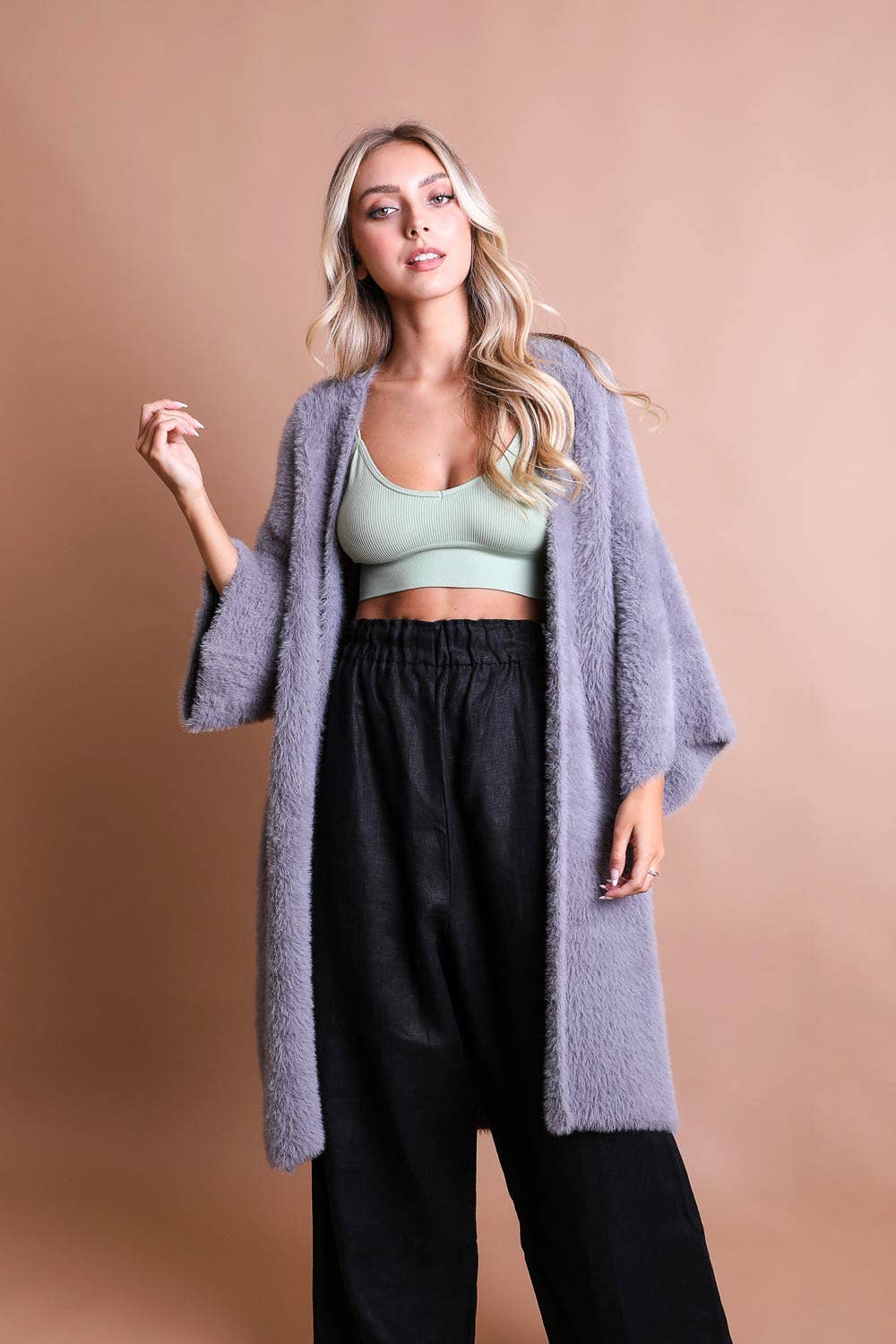 Introducing the epitome of winter sophistication—the Luxe Winter Faux Mohair Knit Cardigan. This isn't just a garment; it's a love letter to comfort and style. Made from the finest faux mohair, this cardigan envelops you in a cloud of warmth without weighing you down. It's breathable, lightweight, and irresistibly soft—everything you need for a cozy winter. The plush texture and elegant drape make it a versatile addition to any outfit, be it a casual day out or a romantic dinner date. With its timeless design and luxurious feel, this cardigan is more than just a winter essential—it's a statement. So why settle for ordinary when you can have extraordinary? Make this winter a season to remember with our Luxe Winter Faux Mohair Knit Cardigan!