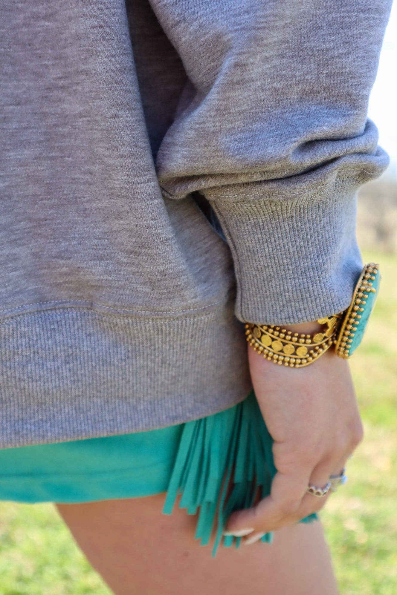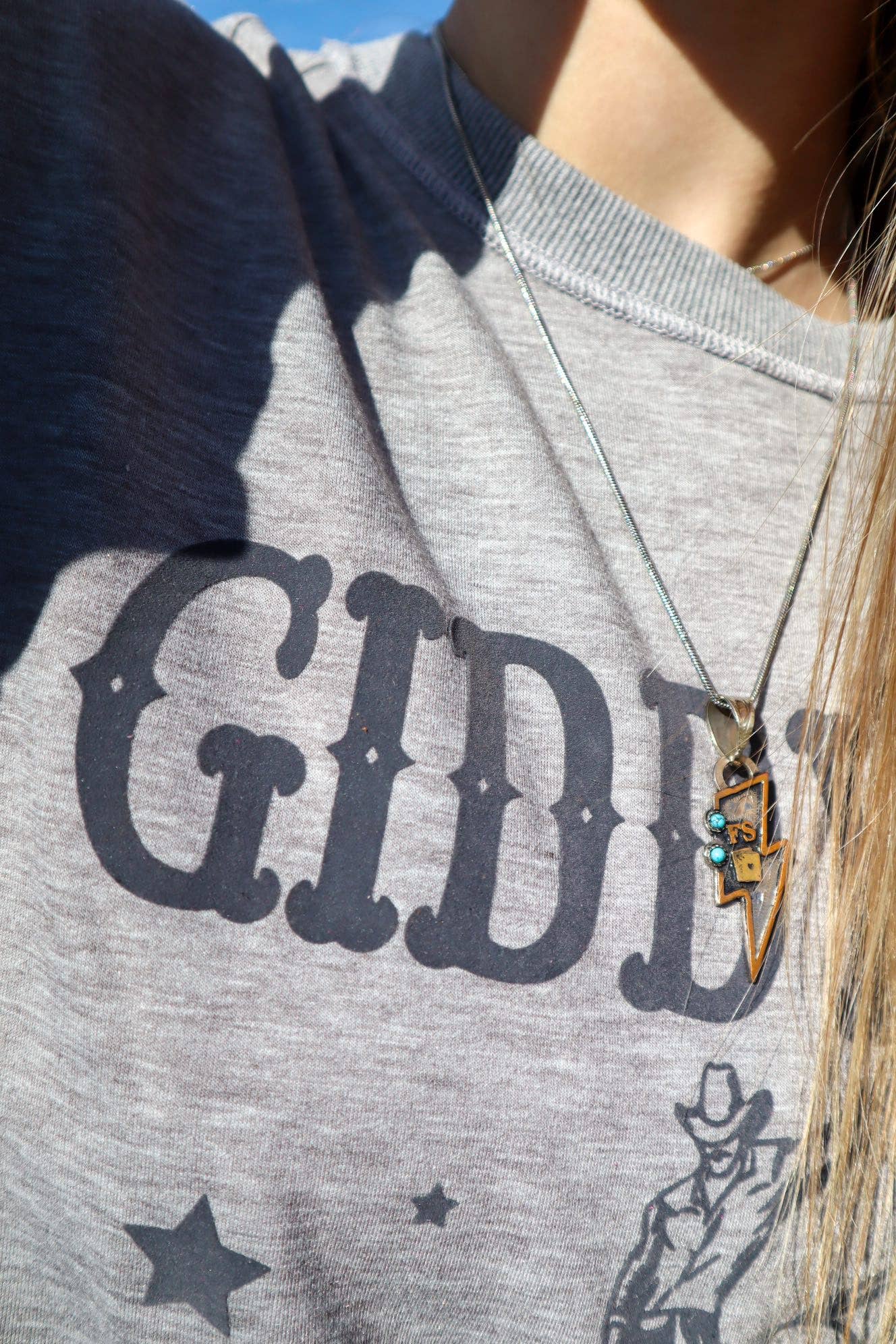 Gray on gray makes for a neutral palette with which you can pair absolutely any shorts, skort, pants, skirt, wild rag, or accessories in your inventory! Long sleeve heather gray buttery soft tee with ribbed sleeve cuff and bottom hem. Lightly flocked dark gray design.