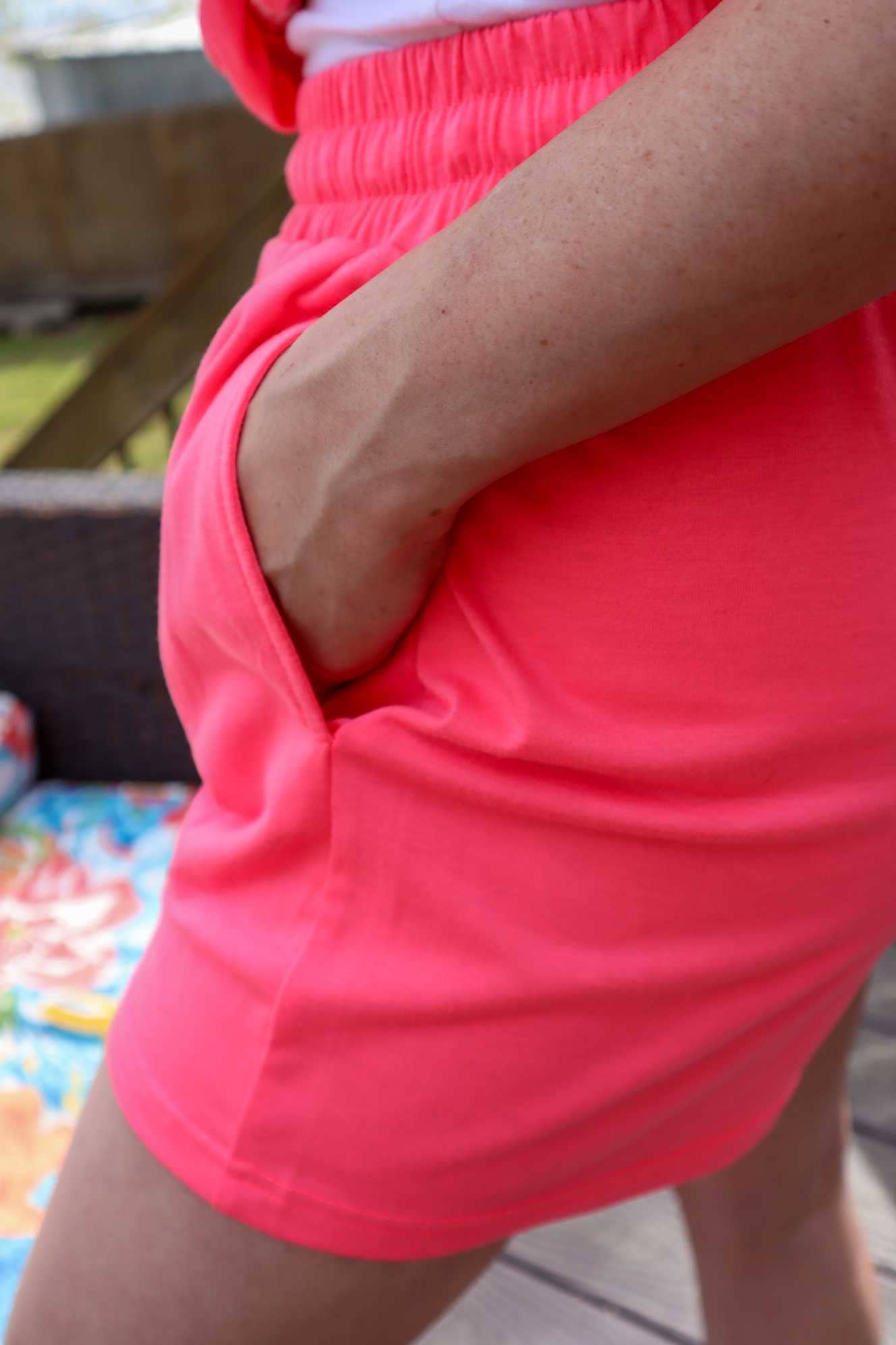 Fierce meets comfy in this hot pink lounge set. Covered with sparkling sequin tigers, it features a relaxed-fit tee with puff sleeves and matching shorts complete with pockets. Whether you’re out making a bold statement or just kicking back in style, this set is the perfect mix of playful, comfy, and eye-catching.