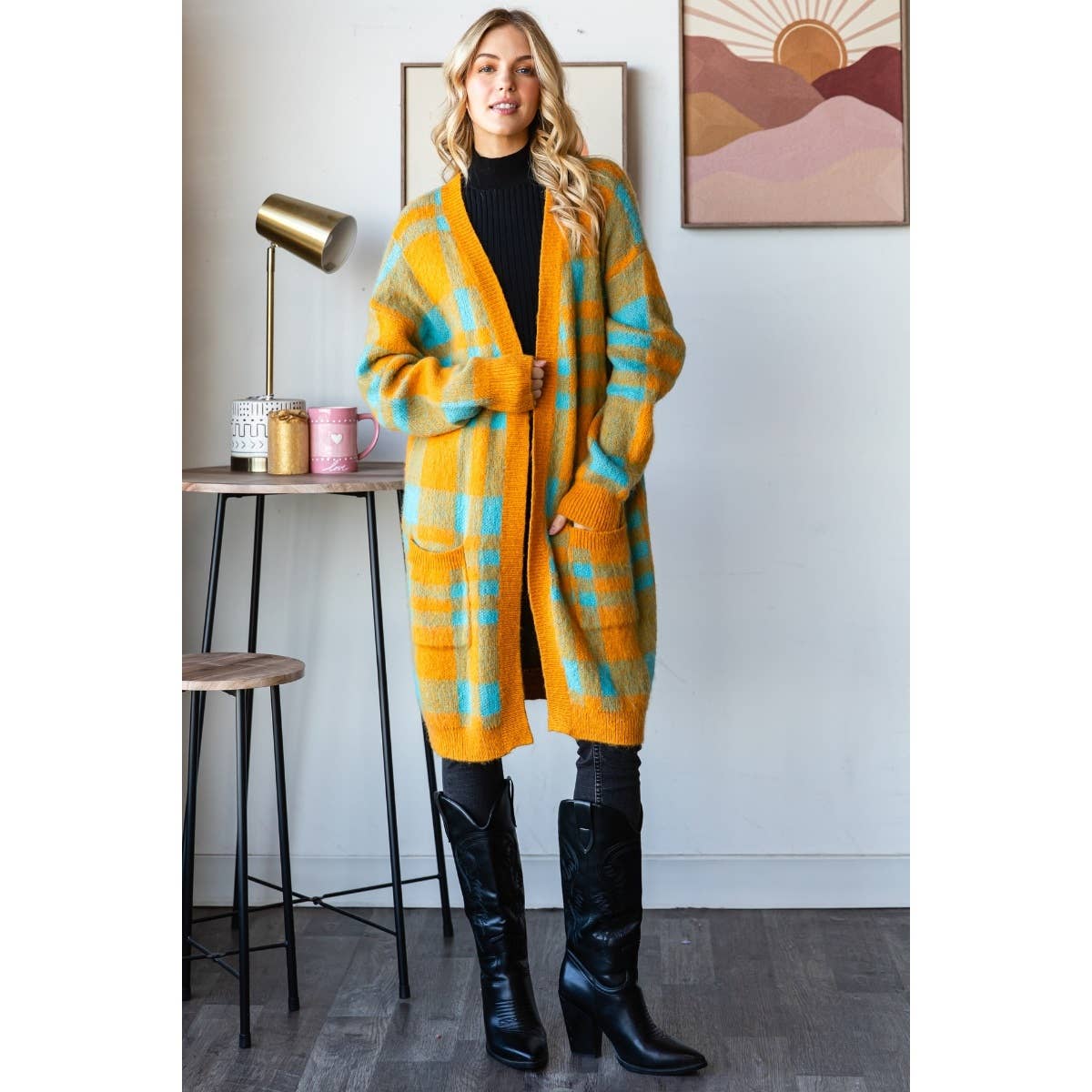 Mohair Sweater Long Cardigan : Camel/Navy / S
