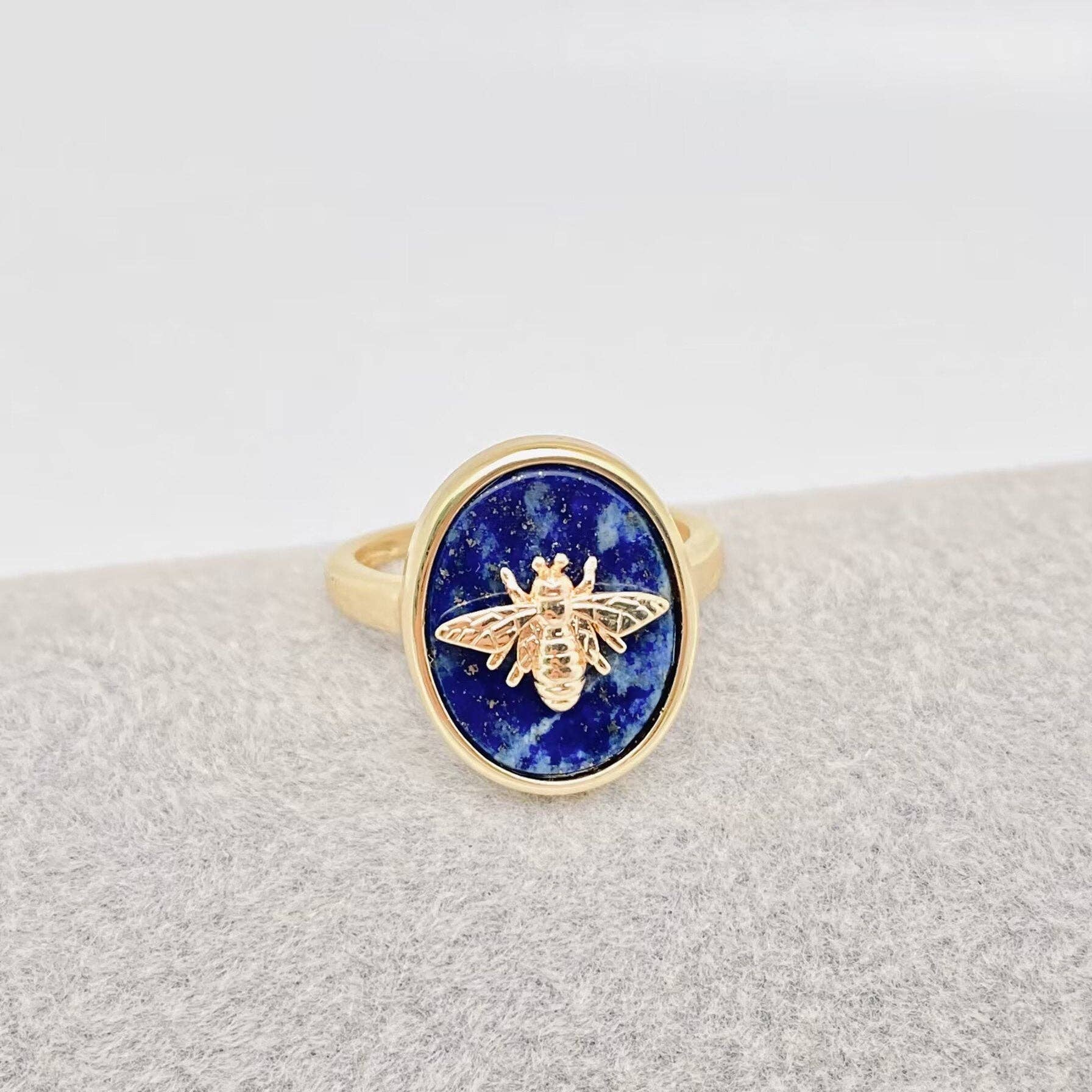 Natural Stone Golden Bee Opening Adjustable Ring - CS