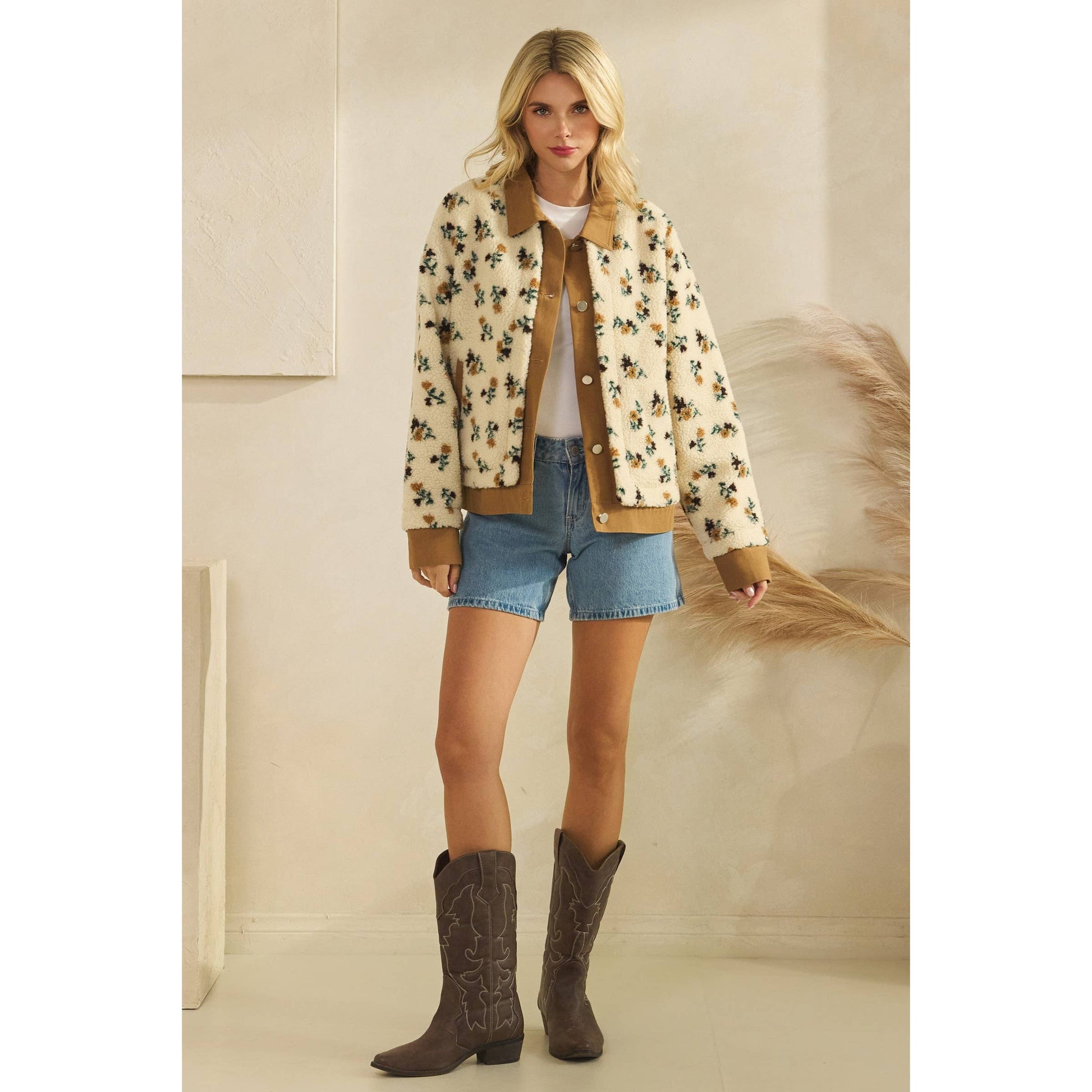 Printed Contrast Button Down Sweater