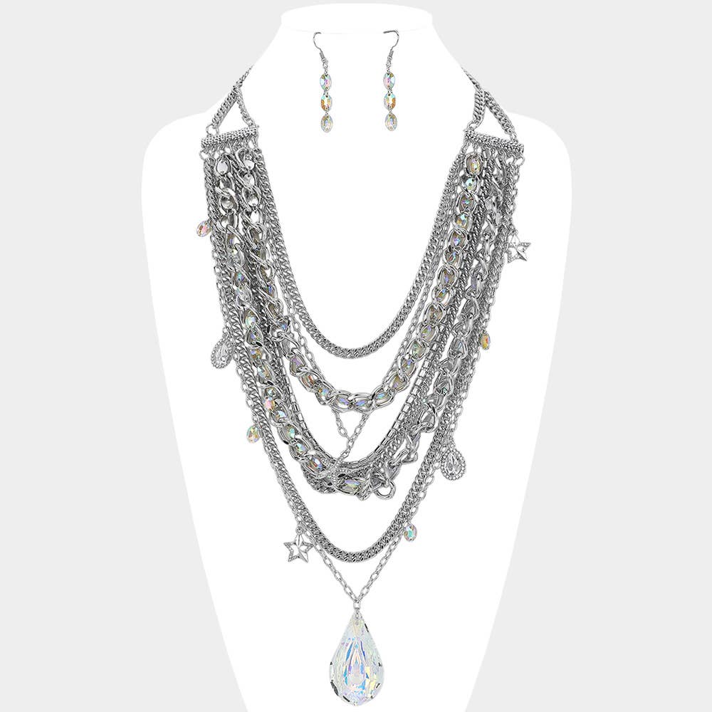 Teardrop Stone Pendant Pointed Star Starfish Charm Embellished Multi Layered Statement Necklace