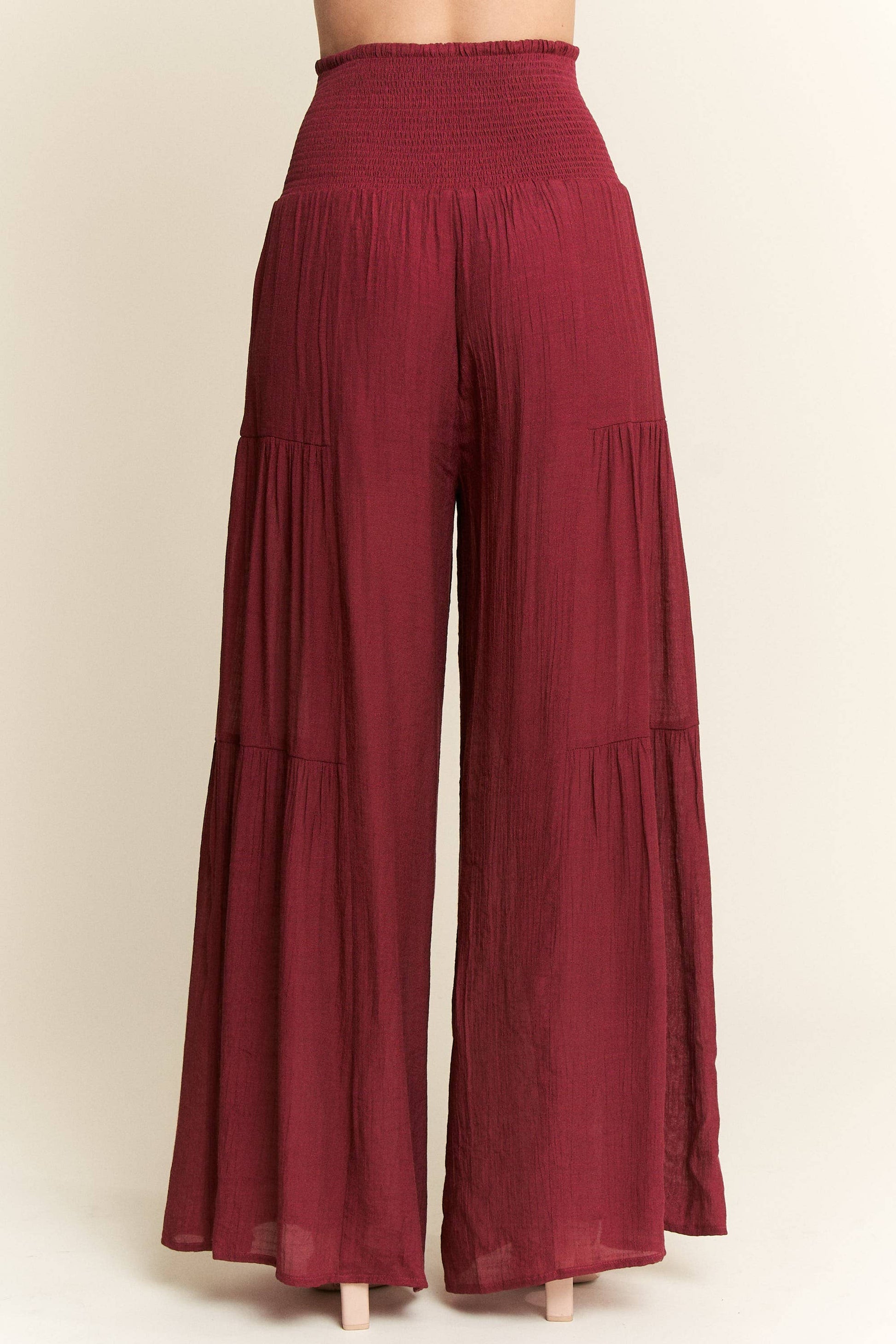 Tie front ruched waist back pants JBJ1033: RUBY / M