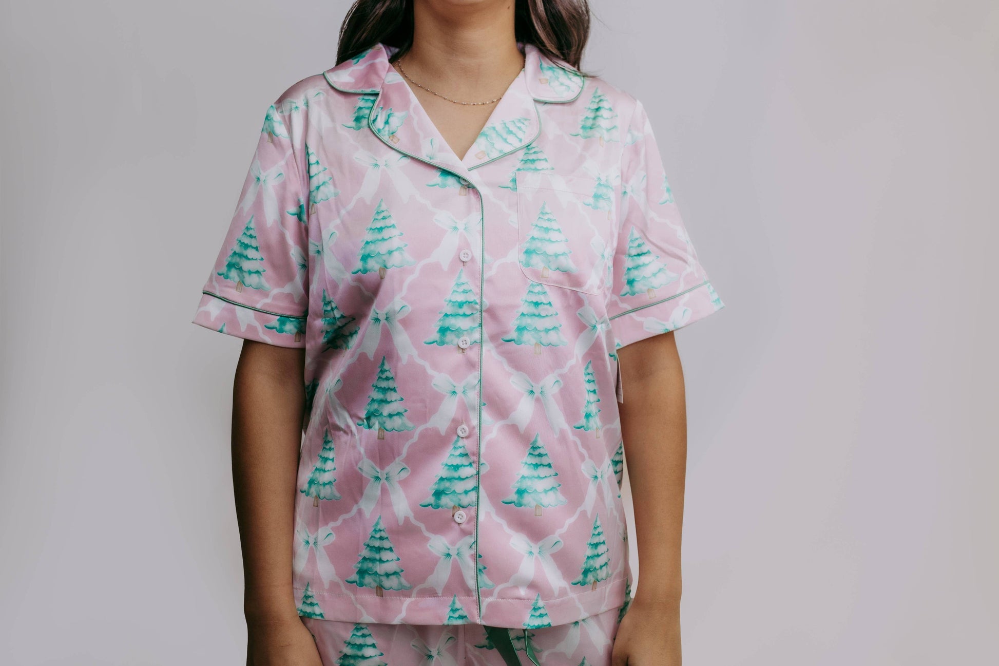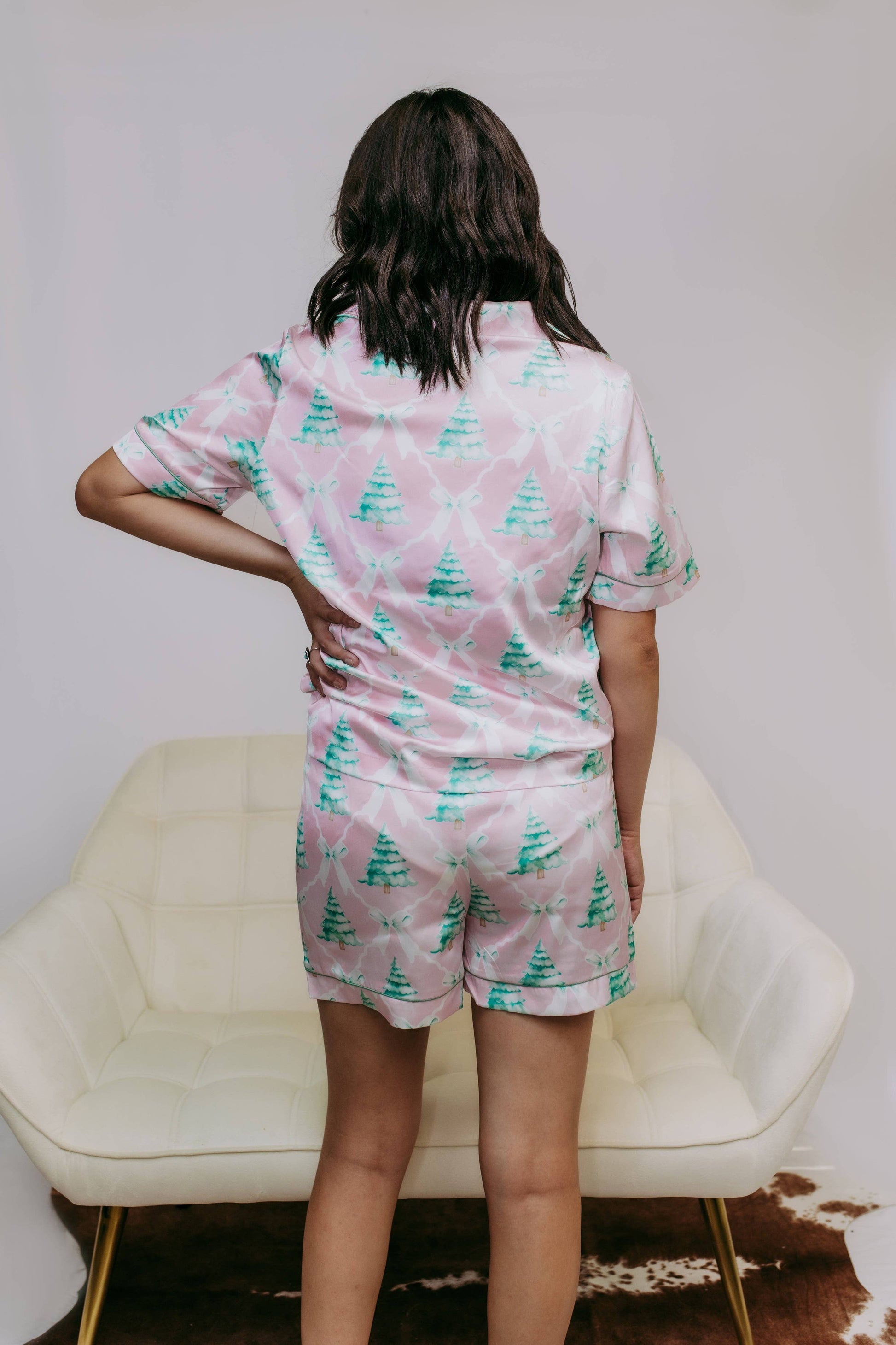 TZ27 Christmas Bows Satin Pajamas Shorts Set